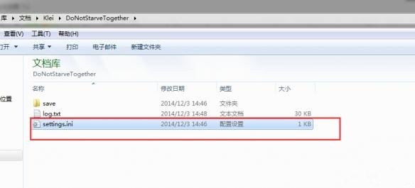 2、或者打開電腦文檔,在裡面找到Klei文件夾,把這個文件夾裡面的DoNotStarveTogether文件夾下面的settings.ini這個文件刪了就行了。