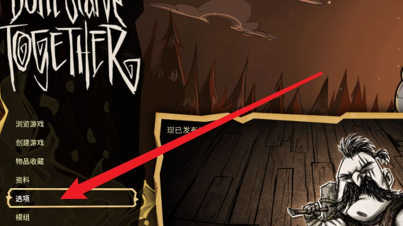 1、進入饑荒聯機版主界面,點擊左側的選項。