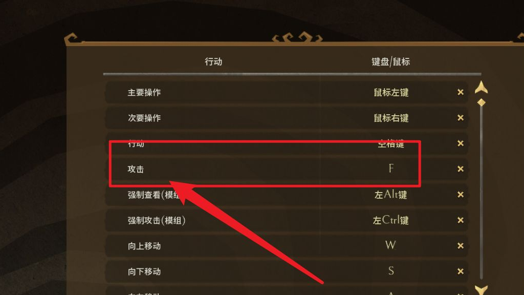 3、在這裡找到攻擊鍵,在這裡就可以重新設置攻擊鍵。
