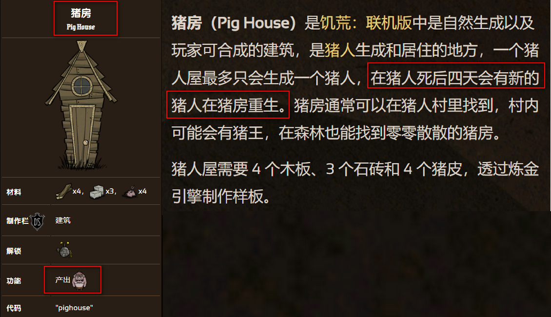 首頁 飢荒 問答 饑荒豬房多久生產一隻豬? 2023-02-13 豬房四天生產一隻豬,一個豬人屋最多隻會生成一個豬人,在豬人死後四天會有新的豬人在豬房重生。豬房通常可以在豬人村裡找到,村內可能會有豬王,在森林也能找到零零散散的豬房。