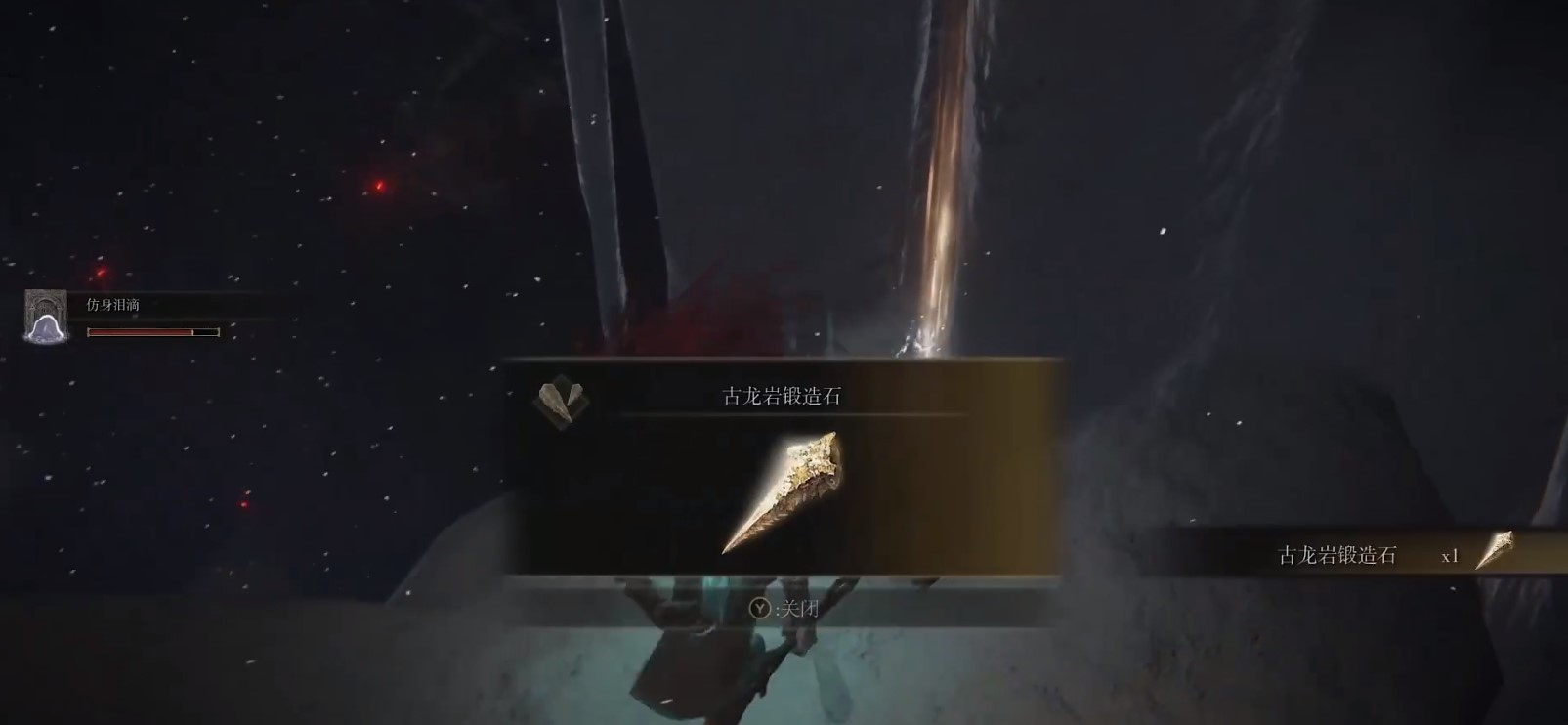 具體方法:路遇一隻龍,擊敗有古龍岩鍛造石 ,一直向下走遇到挑戰BOSS神皮雙人組。擊敗雙人組向下到達龍教堂,遇到另一隻龍,擊敗也有古龍岩鍛造石 。經過大橋側邊賜福,進入霧門挑戰BOSS野獸祭司,二階段變為黑劍瑪利柯斯。擊敗後釋放死亡盧恩。