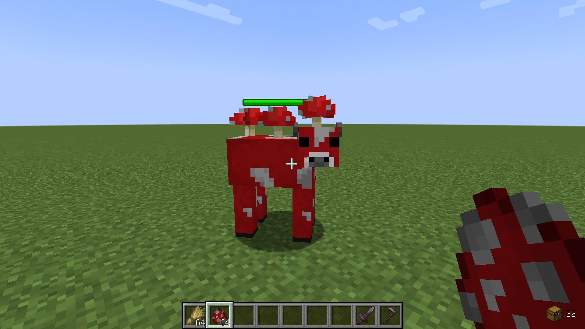 如果你在我玩我的世界PC版本的時候實在是找不到蘑菇牛,你可以是用命令/summon MushroomCow或/summon mooshroom刷一頭蘑菇牛出來。