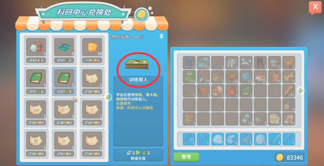 玩家進入游戲後需要先去科研中心兌換處換製作書,然後按照製作書的材料就可以;學會後使用鋼板、硬木板、繩索製作訓練假人。