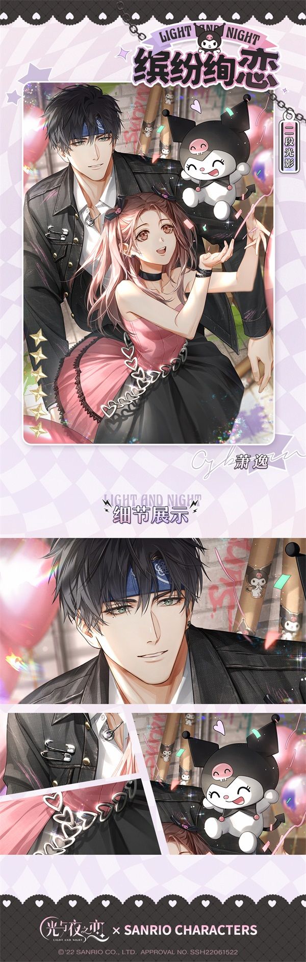 《光與夜之戀》X三麗鷗家族聯動即將開啟,甜酷搭配碰撞出更多化學反應,進入這充滿著奇幻與浪漫氣息的酷洛米樂園,和蕭逸牽手尋找屬於你們的「甜酷戀曲」。