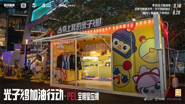 還有什麼比觀看PEL決賽更熱血?即刻前往萬象前海「空投驚喜吉市」,玩家就能與來自全國各地的同好現場觀賽——「PEL助威電競區」現場還原游戲景點布景,搭配光子雞、三級頭、平底鍋等景點元素,打造置身於比賽現場的沉浸體驗。