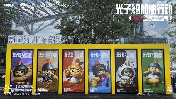 PEL決賽在即,光子雞「盔仔」決定趣味演繹6位PEL明星選手,為PEL夏決全明星應援——臟辮造型的「傘兵Paraboy」,愛吃小熊餅乾的「Justin」,橙子頭的「誠c」,鴿王「33 Svan」,超酷的「77H」,呆萌圓肚子的「顧居居」,六張海報大片現已亮相萬象前海「空投驚喜吉市」!