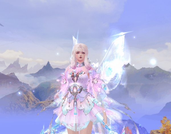 只有執筆浸點天池水,才能畫出【星河曙天】清靈透徹、輕薄如蟬翼的翅膀。其紋絡在日光的照耀下條條清晰、根根分明。自羽翼根部肆意生長的白梅樹枝,與那鑲嵌著淡藍色寶石的孔雀羽毛,一起為這對澄澈的翅膀增添了別樣的嫻雅與妍麗。原本皎如冰晶的羽翼在一揮一動之間變得更為靈動,彷彿有水流在翼間游弋,點點熒光自翅間發散而出。穿戴上【星河曙天】的少俠看起來好似花叢中紛飛的精靈,下一秒便可在大荒天地自由自在地飛行了~