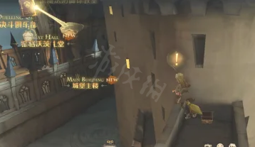 2、往舞廳左邊飛,可以看到空中有一個走廊連接起了兩座城堡。