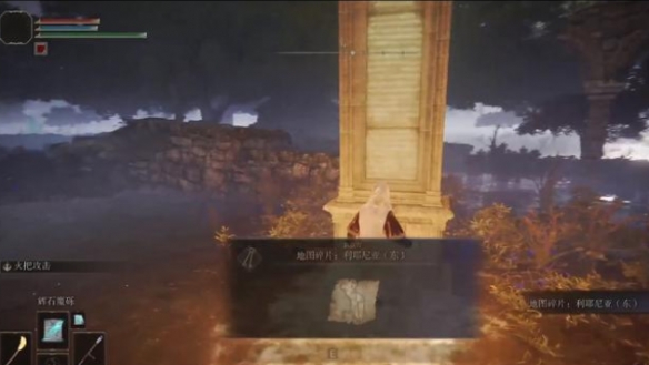 8.然後一直往前到學院門前鎮賜福點,石碑旁邊,獲得【地圖碎片:利耶尼亞(北)】,解鎖地圖;(學院門前鎮下面有個拉斯卡廢墟賜福點,要去激活,後面有用)