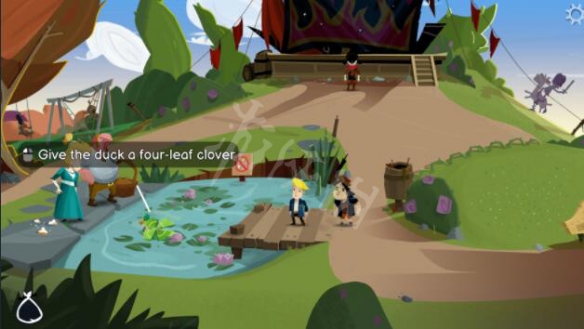 拿起四葉草,走到小池塘的碼頭上,在游泳的鴨子身上使用四葉草。