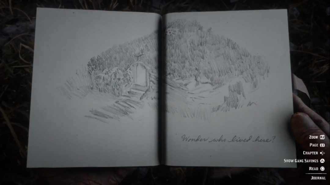 在《荒野大鏢客2》中,玩家可以在去往巴克斯站(Bacchus Station)的路上找到這樣的房子。這個位置挺奇怪的,而且屋子的門很矮,也打不開。亞瑟手書:想知道誰住在這兒(你可以前往巴克斯站旁邊的河流找到答案)。