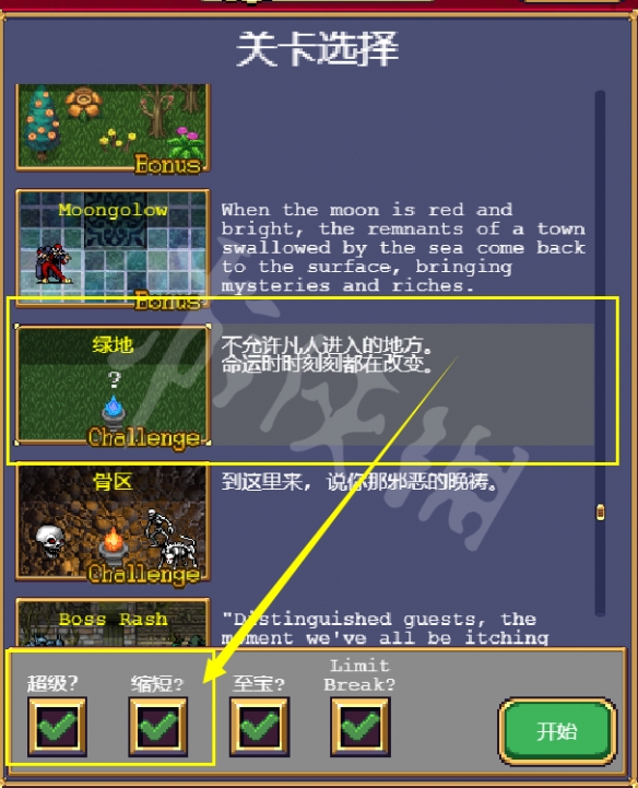 選擇綠地地圖,然後把下面的超級和縮短全部勾上才行。