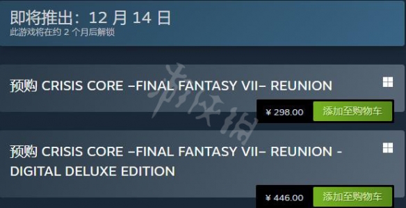 最終幻想7核心危機重聚pc版本已經在steam開啟預購了,有標准版和豪華版版本可以選擇,有些玩家對價格還不是很了解,這里給大家帶來了最終幻想7核心危機重聚預購價格及特典內容一覽,一起來看下文中介紹吧。