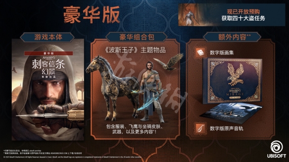 3.數字版原聲音樂以及豪華數字包(包含“波斯王子”套裝、鷹、坐騎皮膚以及武器等等)。