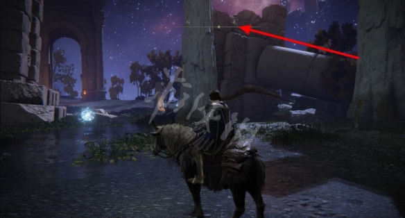 來到賜福南邊,通過倒下的柱子到達建築廢墟上面。