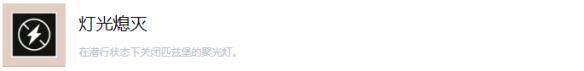 燈光熄滅是遊戲中一個非常特殊的成就,達成條件為:在潛行狀態下關閉匹茲堡的聚光燈。