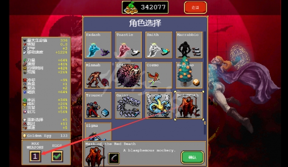 人物不用說,直接紅色死神,在選人頁面把這裡點成1,這個功能的意思是只能使用1個武器。