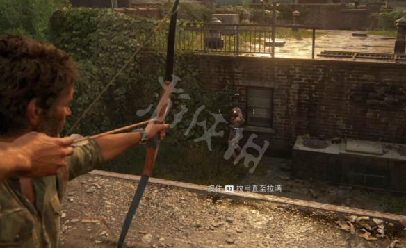 屍體上撿到幾支箭,然後搭梯子爬上車廂,車廂頂部撿到武器【弓】。