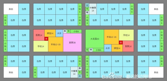 1、所有的房子,都能享受到中間區域所有建築的加成,如酒館、學校、醫院等。