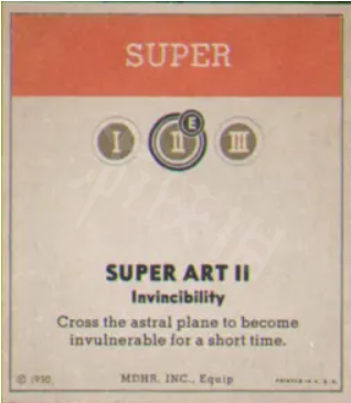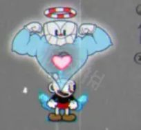 金身無敵,可移動可開火,就是加了個無敵效果,跳崖都能自動蹦出來,無敵時間和你的能量有關係,雖然最多存五發,但你可以在金身時繼續獲得能量(不過就算你一秒一顆能量也頂不住消耗速度)。甚至可以用來卡一些小關卡的小boss(遊樂場狂歡funfair fever金身越過熱狗的身體到達終點他就GG,因為死亡和過關時場上清小怪)也可以在大深淵或密集的小怪的情況下使用(比如第三世界的危險的橋墩perilous piers最後的海上飄移和崎嶇的山脊rugged ridge最後的巨獸追擊),以免失手。召喚時進入茶杯靈魂中,隨後蹦出。金身時間三秒左右。