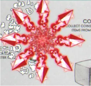 大招(八方):同時向八個方向發射大三角形沖擊波,每顆和豆彈的沖擊波差不多,一樣全屏射程,只要沒有阻擋物就都會一直前進(所以說不要...),但每顆傷害極其雞肋,所以說這個技能其實很dd(被包圍開技能都打不死敵人)