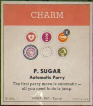 這個技能可以讓你不用二次跳躍進行格擋,跳起來就可以收集粉色能量(但在格擋後二段跳還是需要再次按跳躍鍵的),適合於新手,但在某些BOSS關卡帶方糖還是很好的(有些攻擊不帶方糖不可能格擋)。飛行模式無法使用(因為點一下跳躍鍵就已經可以格擋了,戴跟不戴沒區別)
