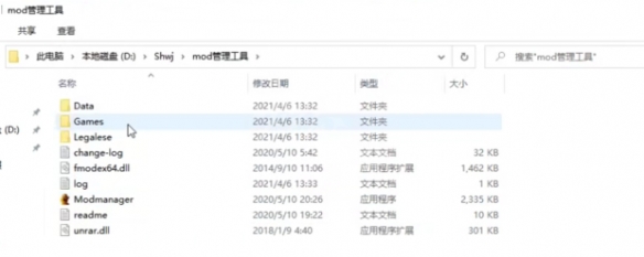 在遊戲根目錄新建一個文件夾起名為mod管理工具
