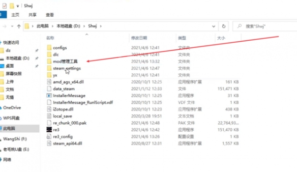 裡面是生化危機3重製版,再點進來是一個mods文件夾,再點進去,以後mod就放到這里即可