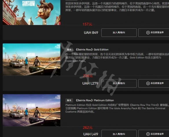 下面給大家分享一下《Saints Row 黑道聖徒重啟版》各區的價格,大家可以對比一下,從價格比較低的區服入手。