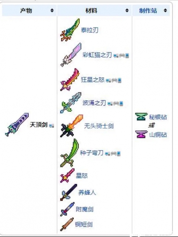 以上就是泰拉瑞亞天頂劍合成表介紹的全部內容,想要了解更多相關攻略的小夥伴可以持續關注遊俠網,這裡每天會為大家推送最新最全的攻略,一定不要錯過哦。