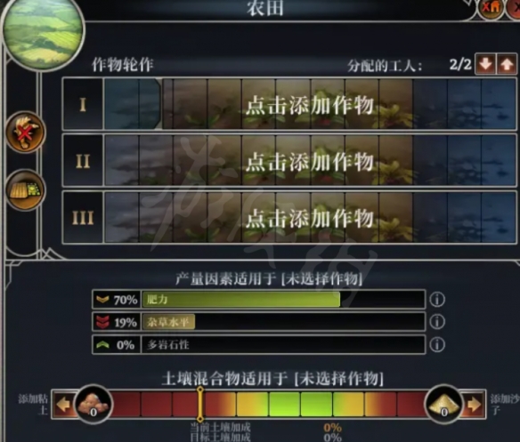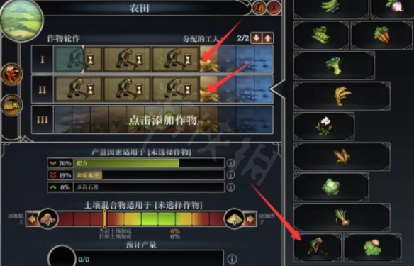 (2)點擊添加農作物,右側選擇【田間維護】,排滿2年6次,降低【雜草水平】、【多岩石性】