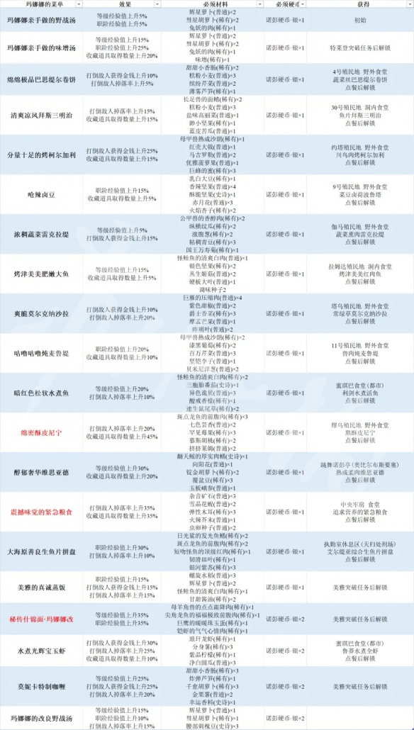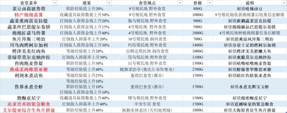 烹飪應該目前就有這些,紅色菜單代表某項效果加成比較高,推薦食用。