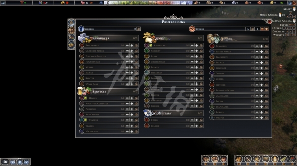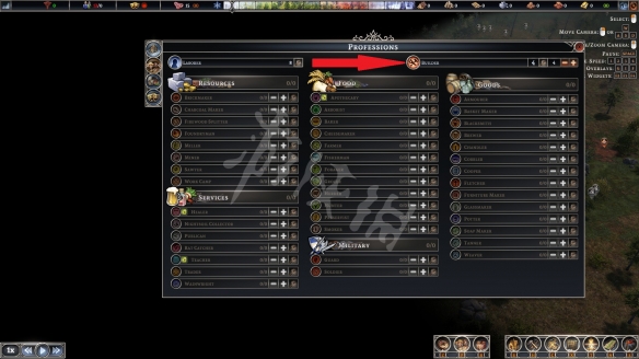 只需按下鍵盤上的P鍵。這將打開“職業”屏幕。在這里你可以管理你公民的職業。