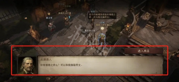 在傳送站的旁邊我們就可以找到NPC"懷特",與之對話就可以到漸熄之燼兌換商店裡兌換東西了。