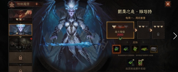 進入條件需要戰斗等級2000,戰團8人進入挑戰,戰團配置主力戰斗等級2000,平均戰力等級1750以上。