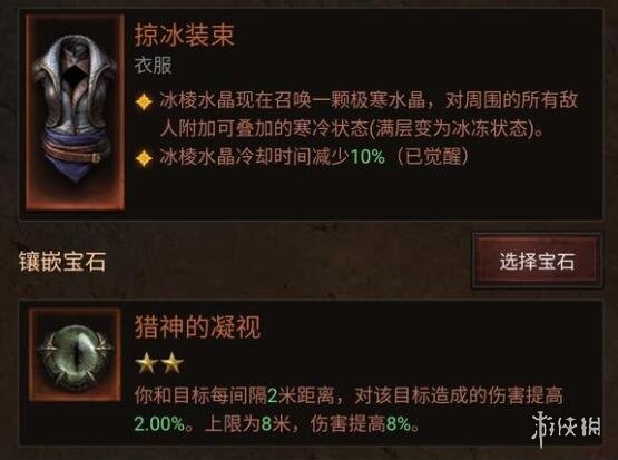 寶石選擇獵神,沒什麼好說的,我之前也提到過了,火線法師利用冰晶能夠輕易吃滿獵神的增傷,屬於中氪以下必養寶石。