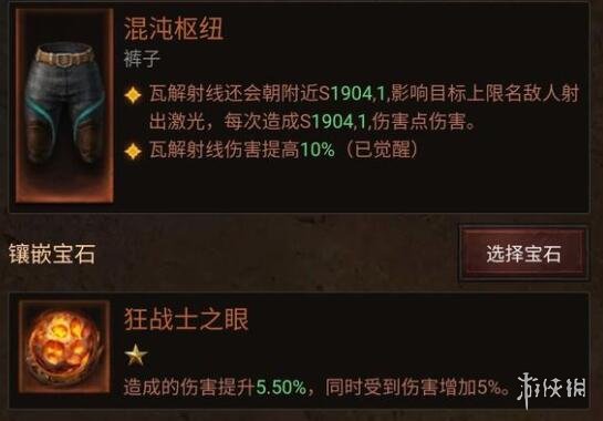 寶石選擇狂戰,簡單粗暴的增傷寶石,而且很容易10級,可以讓褲子覺醒從而獲得額外的10%射線傷害,可謂錦上添花。