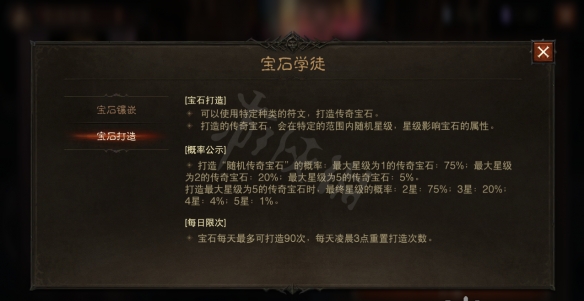 打造“隨機傳奇寶石”的概率:最大星級為1的傳奇寶石:75%﹔最大星級為2的傳奇寶石:20%;最大星級為5的傳奇寶石:5%。