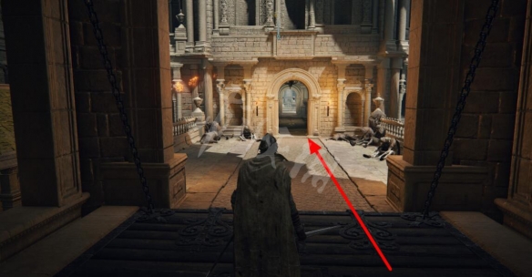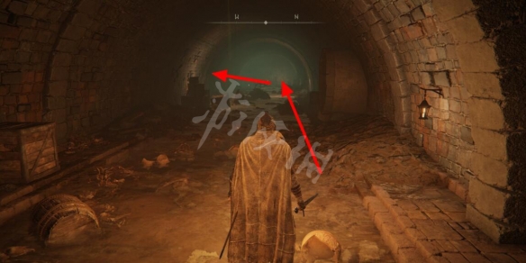 從賜福出門左轉沿著通道前進,在兩個惡兆之子旁邊通過地面的洞口進入管道。
