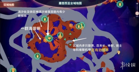 在沙丘島附近有非常多種類型的怪物,其中不乏各種科維斯機甲,海噩蜥,尖角龍魚,海座獸等,願稱之為名副其實的寶島。