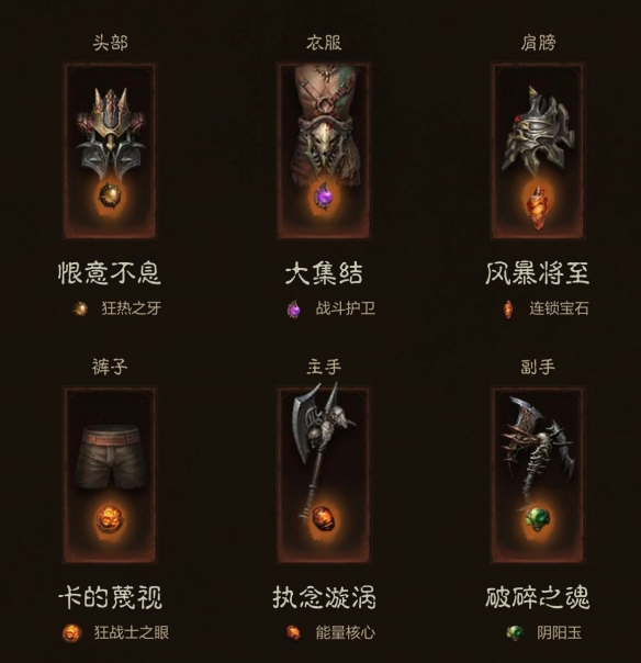 2星狂熱之牙,2星戰斗護衛,1星連鎖寶石,1星狂戰士之眼,1星能量核心,2星陰陽玉