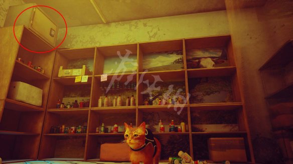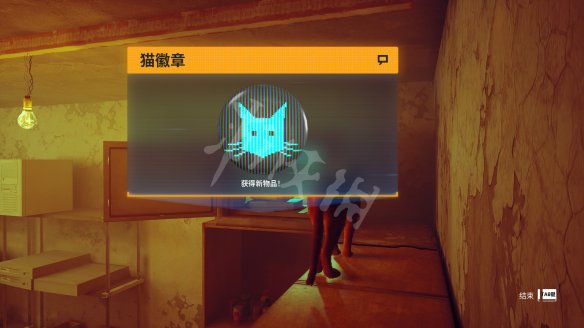 爬到後面的櫃子上,對保險箱輸入密碼8542後就能打開,保險箱里就是貓徽章。