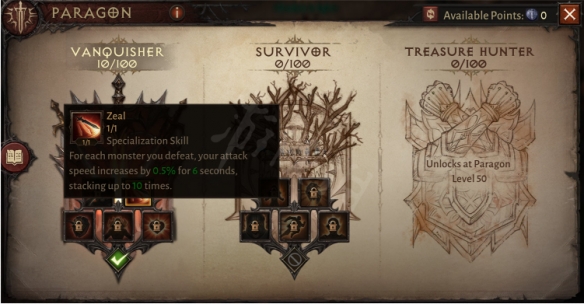 基礎等級滿級為60級,之後還有巔峰等級,該機制沿用了《暗黑破壞神3》的遊戲機制,讓玩家形成新的目標,繼續享受升級的成就感。巔峰等級提高後,玩家會獲得巔峰技能點數。由於每個角色有五條巔峰技能樹可以選擇。