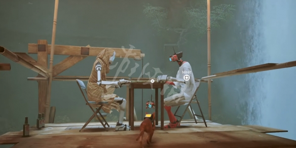 第一個場景結束後,當你到達村莊時,從左邊的梯子上走,會有2個機器人坐在一張桌子旁打麻將。