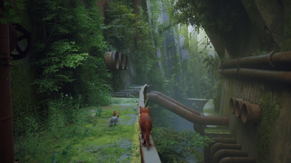 離開此區域繼續向前探索,在岔路口左拐可以看到一個被封鎖的大電梯,繞到電梯後面,這裡有一個靠著牆的機器人Bonobot,在他腿邊輕蹭即可。