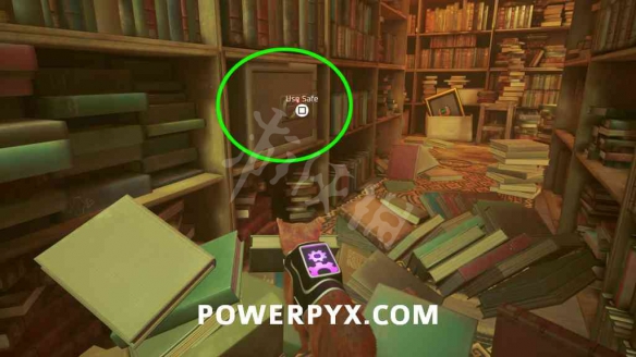 離開卧室,左轉,第一個和第二個書架之間是一摞書,跳上去把書翻倒,露出書後面的保險箱。使用鑰匙打開保險櫃,在裡面找到醫生的筆記本。