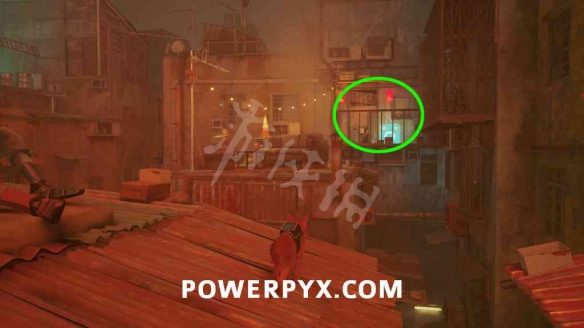 去屋頂的中心,兩個機器人正在扔水桶。房子的一側有-個紅色的小屋項,跳到那裡,爬上空調到上面的陽台。跳過打開的窗戶,在公寓里找到莫莫。