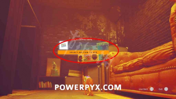 進入更衣室所在的服裝店後面。在那裡你可以看到一個收音機,與它互動並從你的庫存中插入磁帶。