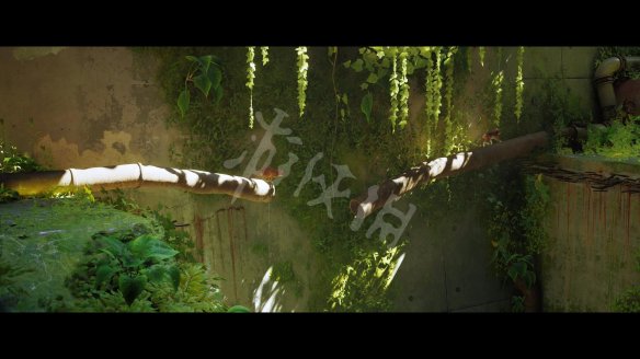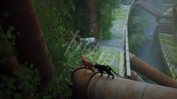到達水管那裡時觸發劇情。跳躍過程中水管斷裂,小橘貓掉到了地下通道與同伴失散。