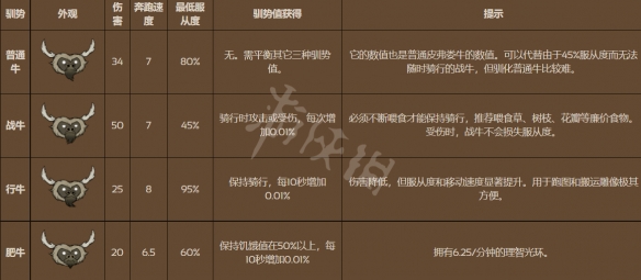3.喂10根樹枝,然後騎行。騎行或飢餓值不為0時,牛將積累馴化度。被甩下後,玩家可以立即嘗試再上牛,如果無法上牛則一個一個餵食直到能騎行,這么做可以節約食料。